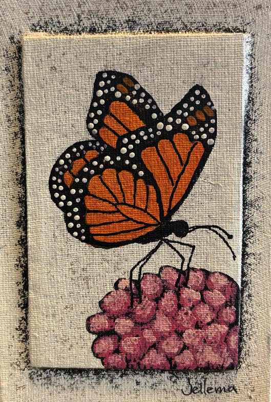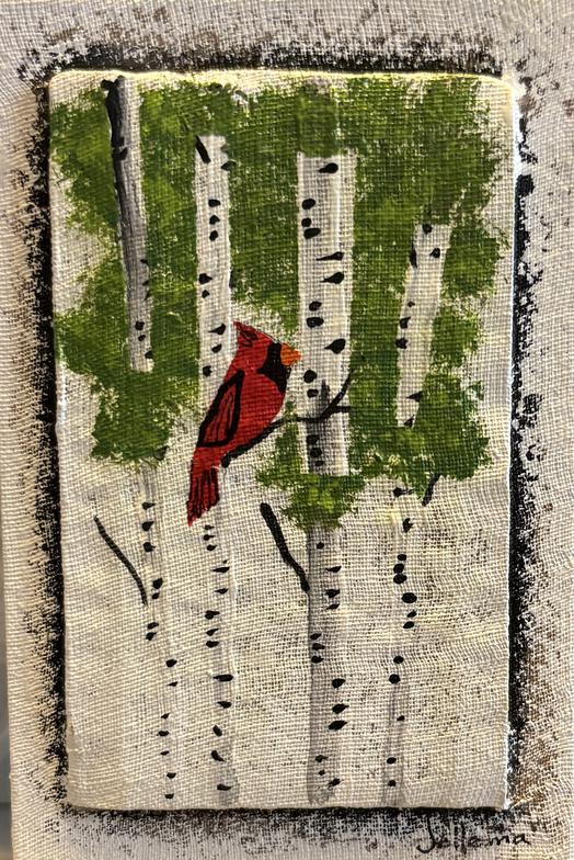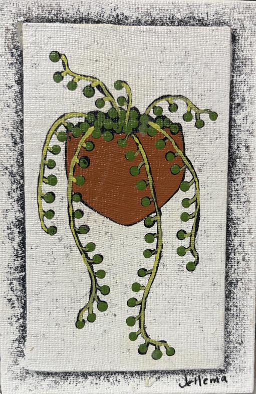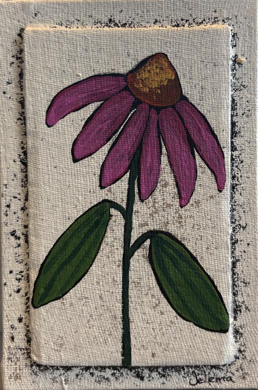 These are 4" x 6" flat versions of some of the design elements in our larger pieces. They are painted on canvas board with a raised center to form a framelike border. Each miniature is hand painted individually - no prints or reproductions. A sawtooth hanger is glued to the back. They also look great on small easels or tripods.