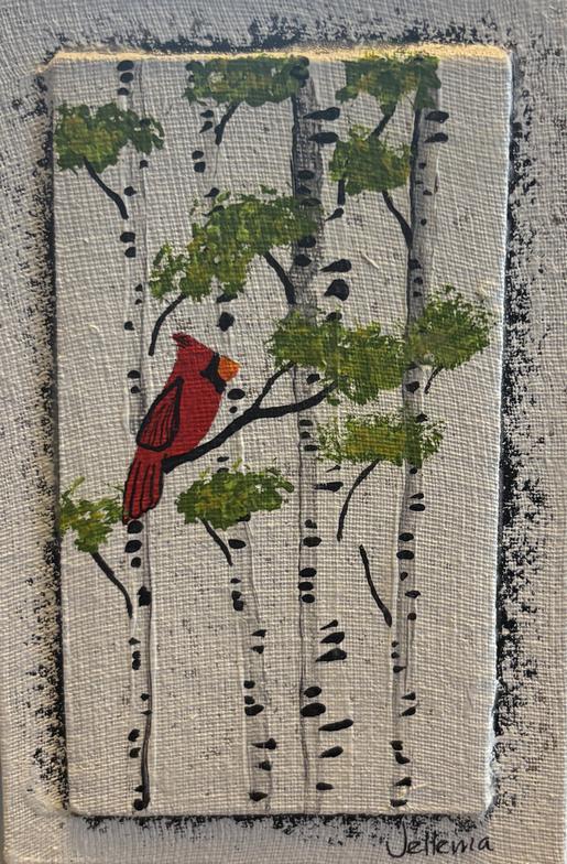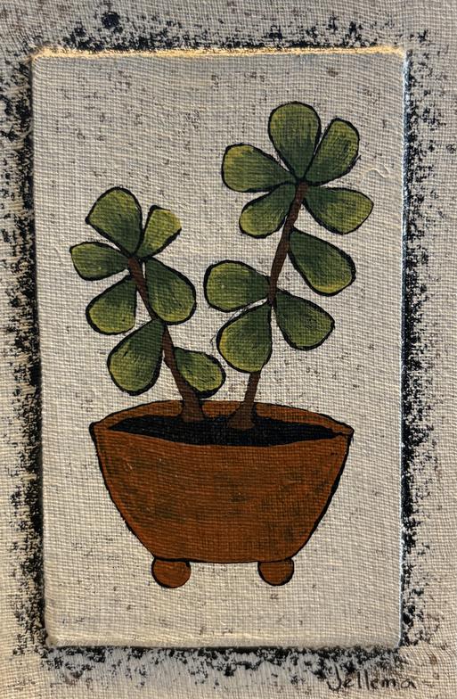 These are 4" x 6" flat versions of some of the design elements in our larger pieces. They are painted on canvas board with a raised center to form a framelike border. Each miniature is hand painted individually - no prints or reproductions. A sawtooth hanger is glued to the back. They also look great on small easels or tripods.